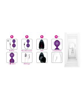Geisha balls para llevar un óptimo control de tu suelo pélvico y tus músculos vaginales. Cuenta con un motor integrado en la bola superior con 10 funciones de vibración. Estas vibraciones, además de fortalecer tus músculos, te ayudará a magnificar tus orgasmos. Podrás controlar estás 10 funciones con su control remoto. Silicona de grado médico y recargable por USB.