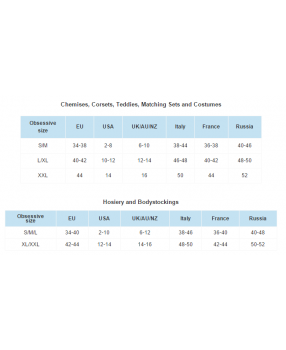 Talla: S/M Obsessive significa inspiración en la mujer! Elegancia, sensualidad, amor a la costura....significa mucho para la mujer, pocos son los adjetivos que pueden calificar a Obsessive, donde una labor de años han conseguido unir la mejor relación calidad-precio. ¡Líderes mundiales en lencería, nadie lo hace mejor!
